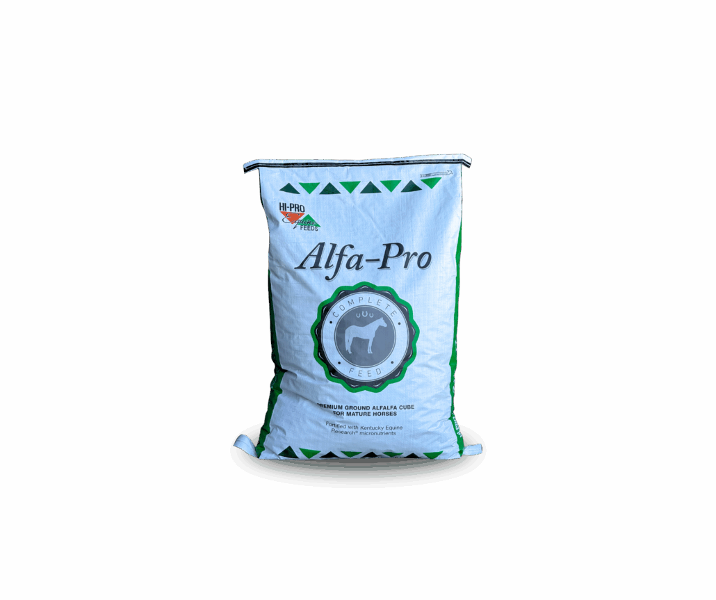 A fortified ground alfalfa cube from Hi-Pro Feeds formulated to serve as a complete feed for mature horses. It delivers about 14% crude protein with 3% fat along with added vitamins, minerals, prebiotics and probiotics to support digestion and overall health, plus vitamin E and selenium to aid immune function and help reduce the risk of tying-up. Because it’s made from consistent, ground alfalfa, this cube can replace hay or pasture in a ration when needed, offering a convenient, dust-free, easy-to-feed option at home or on the road.